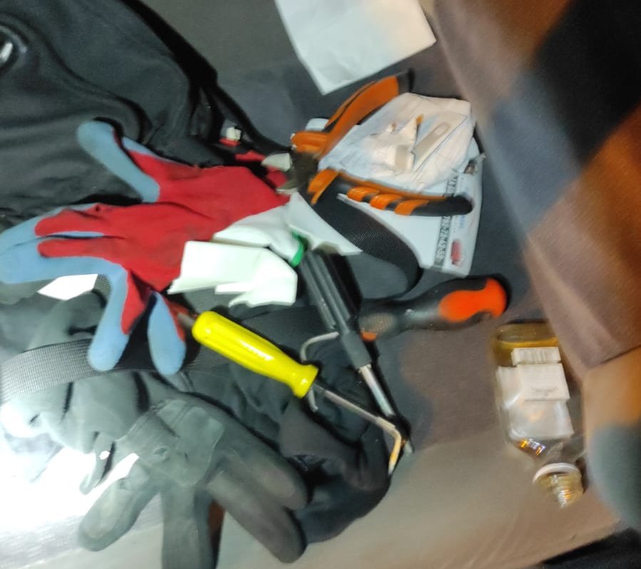 Po sprawdzeniu ich danych w policyjnych systemach informatycznych okazało się, że kierowca ma bogate notowania kryminalne, a do tego czynne dwa zakazy prowadzenia pojazdów obowiązujące łącznie do września 2027 roku. Ponadto uwagę policjantów zwrócił 60-centymetrowy łom leżący przed siedzeniem pasażera. W aucie policjanci ujawnili również szlifierkę akumulatorową, podnośnik ręczny, rękawice i kombinezon roboczy, tarcze do cięcia metalu i inne przedmioty mogące służyć do popełnienia przestępstwa. Natomiast kierowca miał przy sobie dwa zagięte śrubokręty oraz kominiarkę. 42-letni kierujący i 26-letni pasażer zostali zatrzymani.