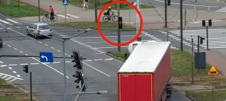 Policjanci z bydgoskiego wydziału ruchu drogowego przeprowadzili działania w rejonie Ronda Toruńskiego w Bydgoszczy. Tym razem do działań wykorzystali policyjnego drona, który z powietrza obserwował zachowanie kierowców. W szczególności tych, którzy wjeżdżali na rondo na czerwonym świetle. Informacja o wykroczeniu natychmiast przekazywana była patrolowi „drogówki”, który kilkadziesiąt metrów dalej zatrzymywał wskazany pojazd i rozliczał niezdyscyplinowanego kierowcę.